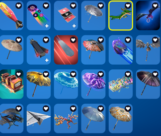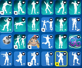 -250(в эпике при входе почему-то пишет 249, в шкафчике 250) скинов, 311 бекпеков, 307 кирок, 226 дельтиков, 3 пары ботинок, 821 эмоция, граффити, эмодзи