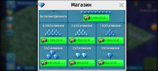 От 550 шт. — 0.36₽ за алмаз (200₽ за пак) — в игре 449₽
