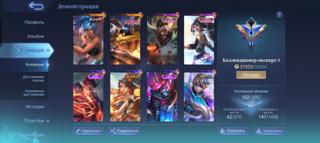 Регион ру, 80 персонажей, фулл эмблемы, 141 облик.ранг легенда максимум 36 звёзд.