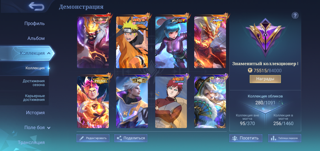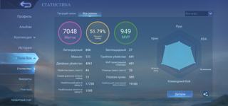 Характеристики аккаунта: ID 396771772 максимальный ранг — 66 звёзд. Героев — 132, обликов — 280.