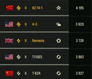 Топы - Е5(3метки), BZ-74-1(3метки). Средний на большинстве топов 3700-4200.