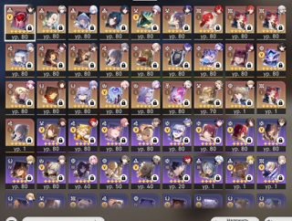 Почти все персонажи полностью прокачаны (также есть много резервной энергии, универсальных ресурсов и 1000+ золотых реликвий, так что при желании любого персонажа можно сразу же пересобрать/прокачать).